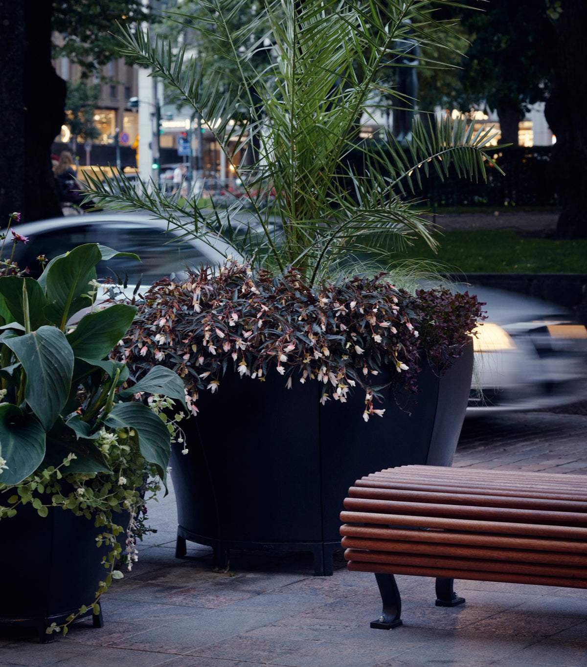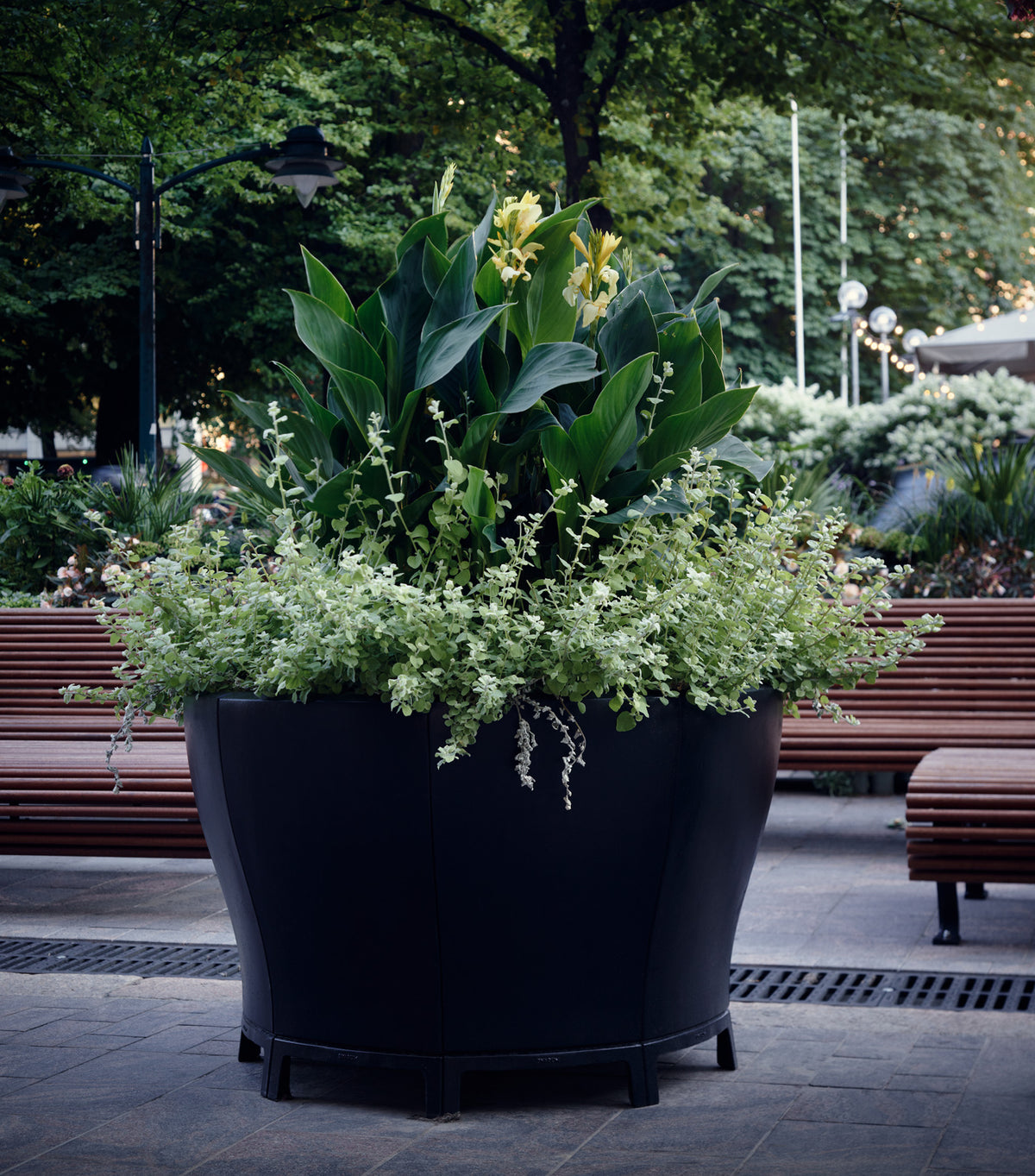 Ett stort antal planteringskärl ur Byarums Bruks Blom-serie har använts i parken. Under sommaren har de varit fyllda med en blandning av nya och gamla växter, i en genomtänkt färgskala som matchar ursprungsparken och den omgivande arkitekturen. Snart kommer de ersättas av andra säsongsanpassade planteringar.