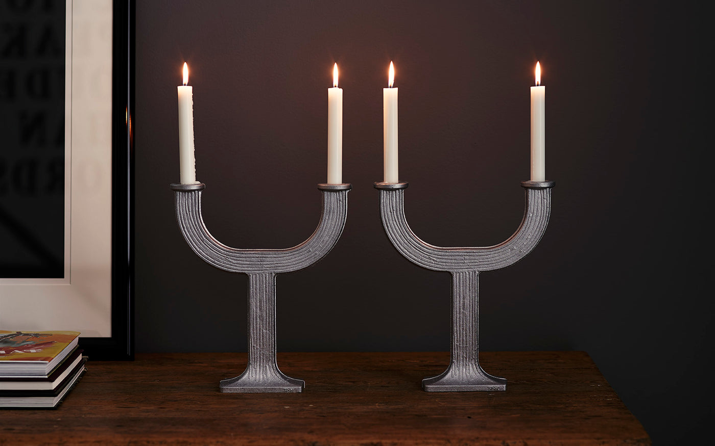 Signe Persson-Melin’s Salut candelabra plays with the wonderful symmetry of the U-shape. The rough aluminium creates a surface – not too glossy and not too matt – that sets off the relief pattern beautifully.