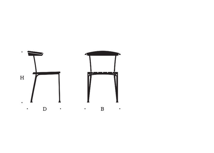 Denna stabelbara stol är tillverkad av kalldraget rundjärn, Ø 10 mm,och med en rygg gjuten i återvunnen aluminium.