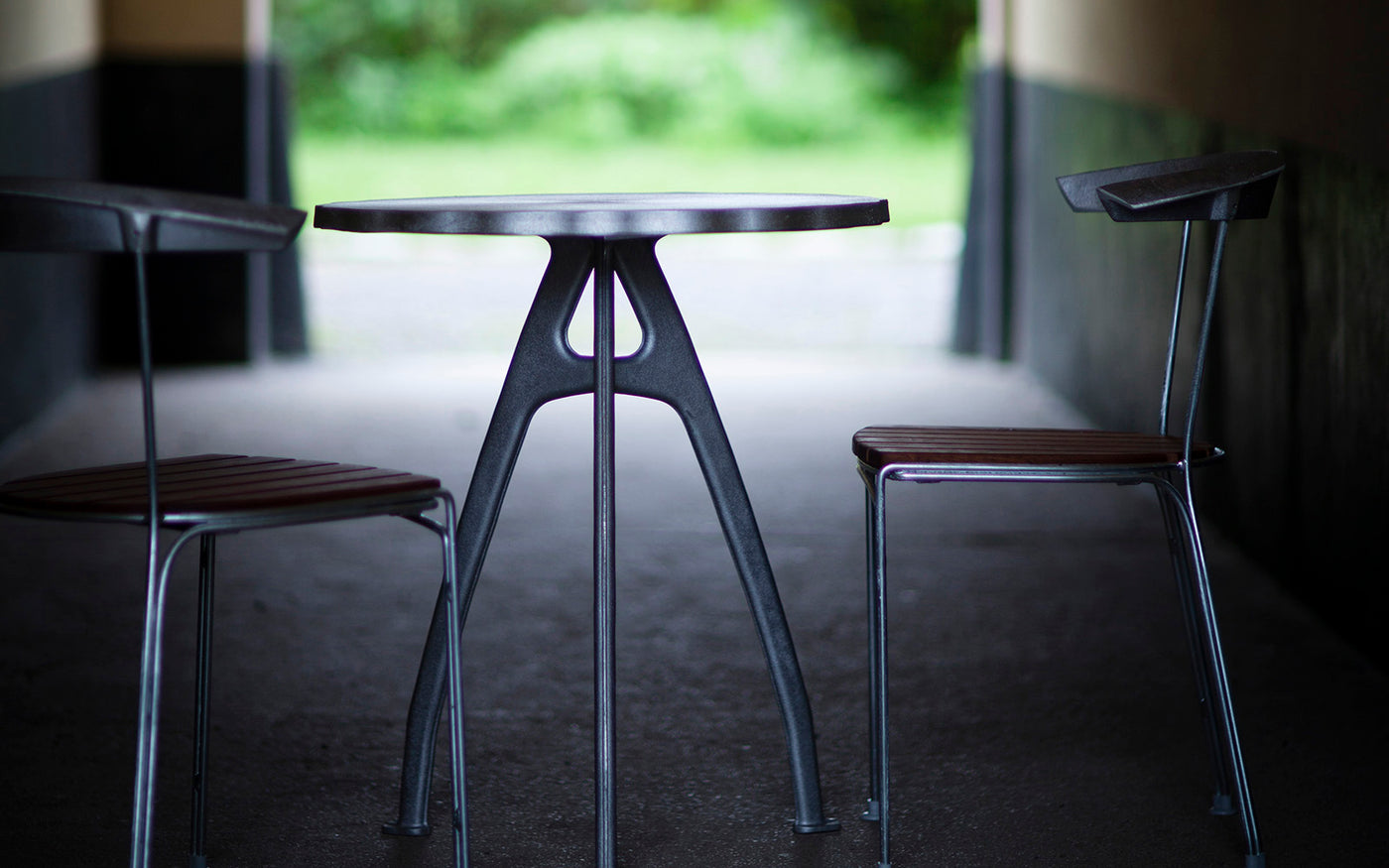 Med bordet Odd har formgivare Mårten Cyrén använt sig av möjligheten att arbeta med relief och varierad kontur. Det är ett område där gjuteritekniken i förening med de skickliga gjutarna i Byarum ger stora möjligheter. Den ena av de två bordsskivorna hämtar inspiration i en stiliserad kapsyl eller en pepparkaka, den andra en klassisk ornamentslinga i relief.