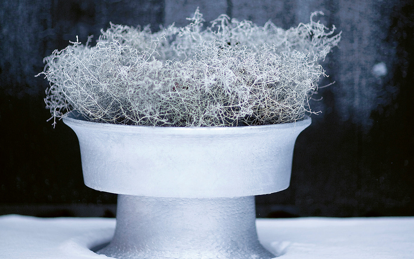 Pokalen är en form som Signe Persson-Melin intresserat sig för i många år och formgivit i både eternit, glas och keramik. Förutom att den är vacker är det också alltid tacksamt att plantera växter en bit upp från marken.
